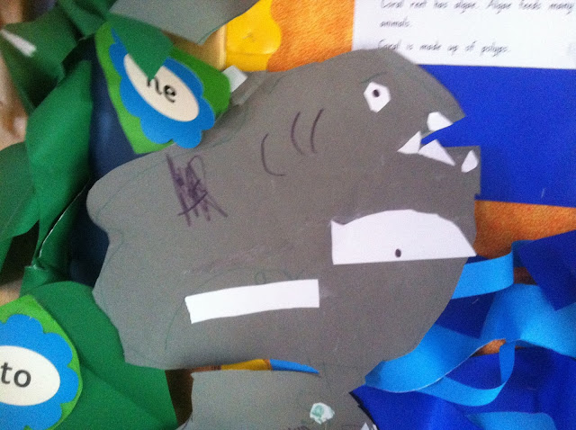 The products? They actually turned out better than my boring cookie cutter lessons. Check out these awesome looking sharks--entirely made by the hands of students with very little to no teacher assistance: